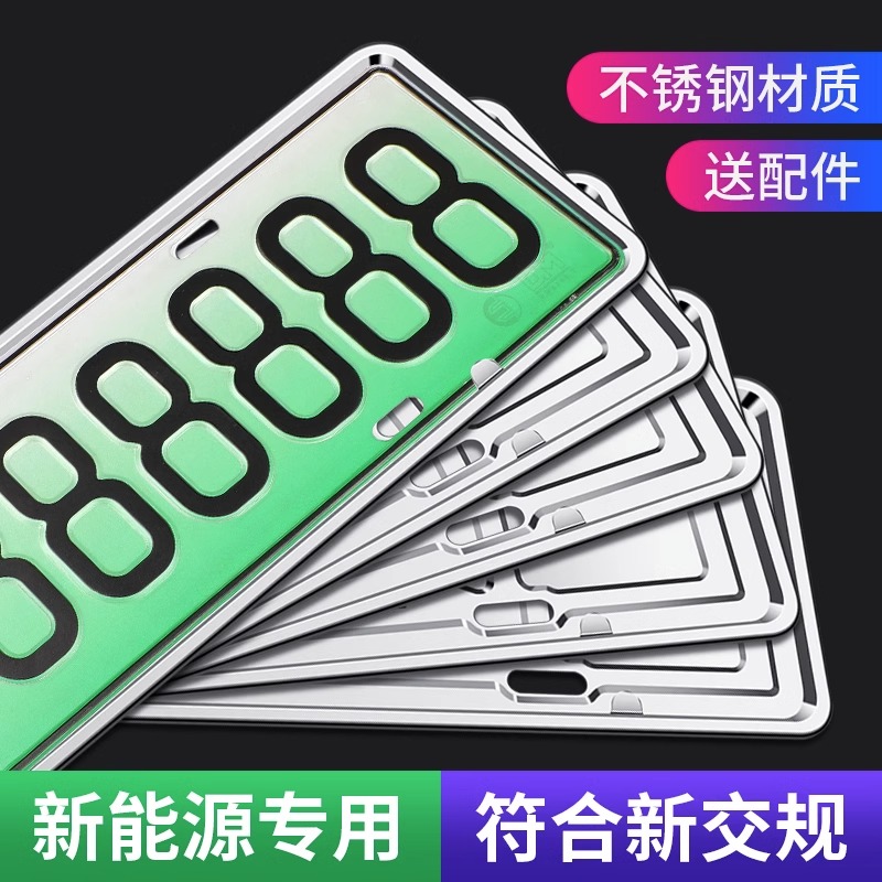 车牌保护框牌照边框新能源绿牌架汽车蓝牌号套罩不锈钢加厚加硬&4