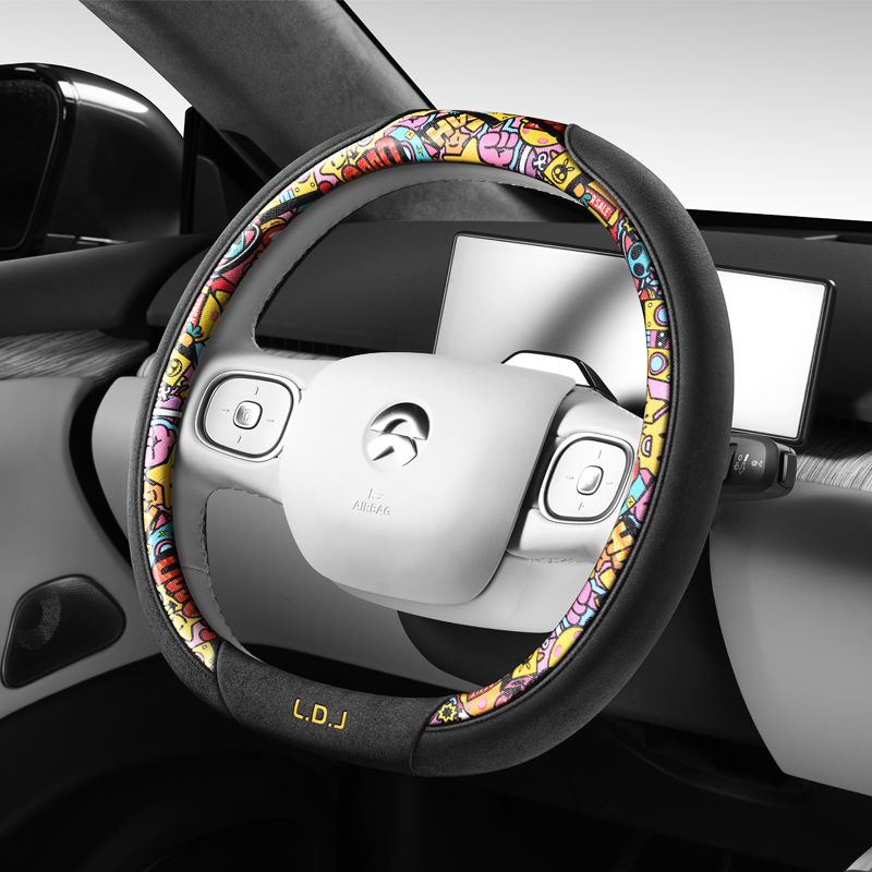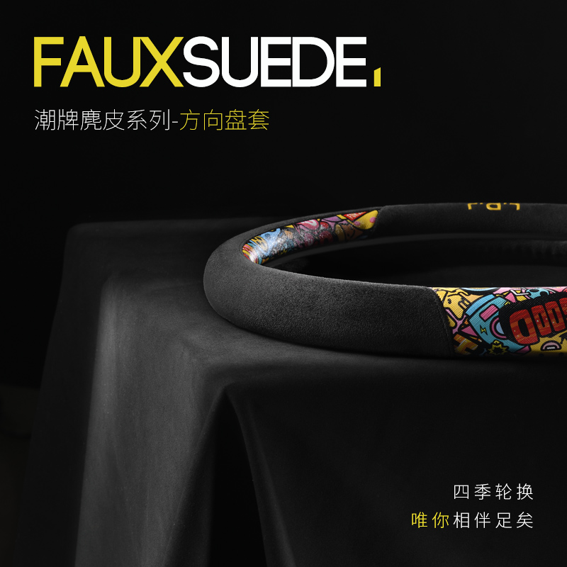 汽车方向盘套超薄D型防滑麂皮绒把套翻毛皮潮牌车把套四季 通用型