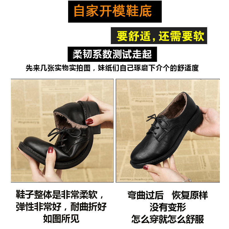 黑单鞋 真皮软底加绒小皮鞋 休闲平底豆豆鞋 2025春秋新款 女乐福鞋
