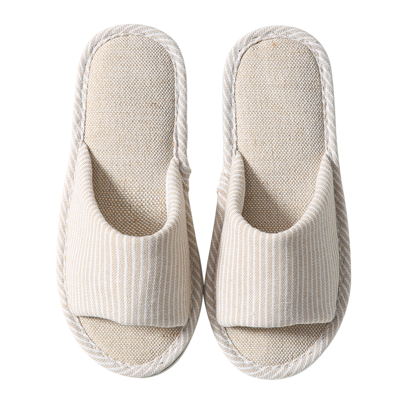 男四季 防滑日系小香风透气室内静音居家软底拖鞋 春秋女款 亚麻拖鞋