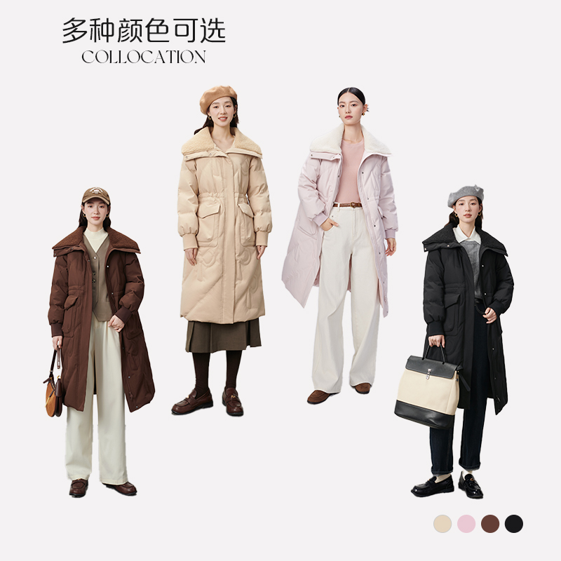 加厚过膝外套 羽绒服仿羊羔毛领长款 艾莱依冬季 时尚