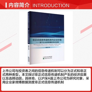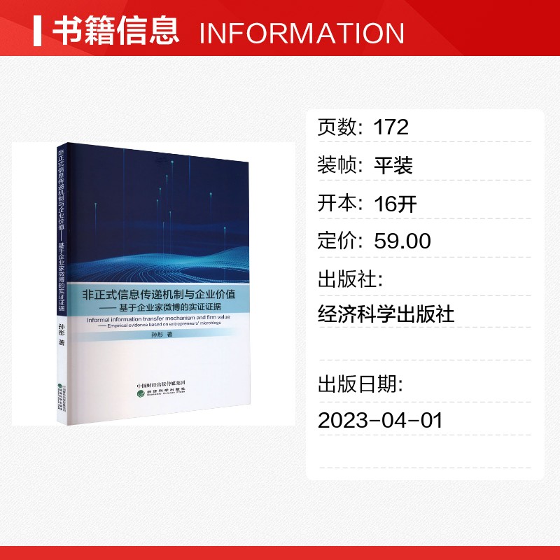 励志 社 实证证据 经济科学出版 图书籍 新华书店正版 经济理论经管 著 孙彤 信息传递机制与企业价值——基于企业家微博 非正式