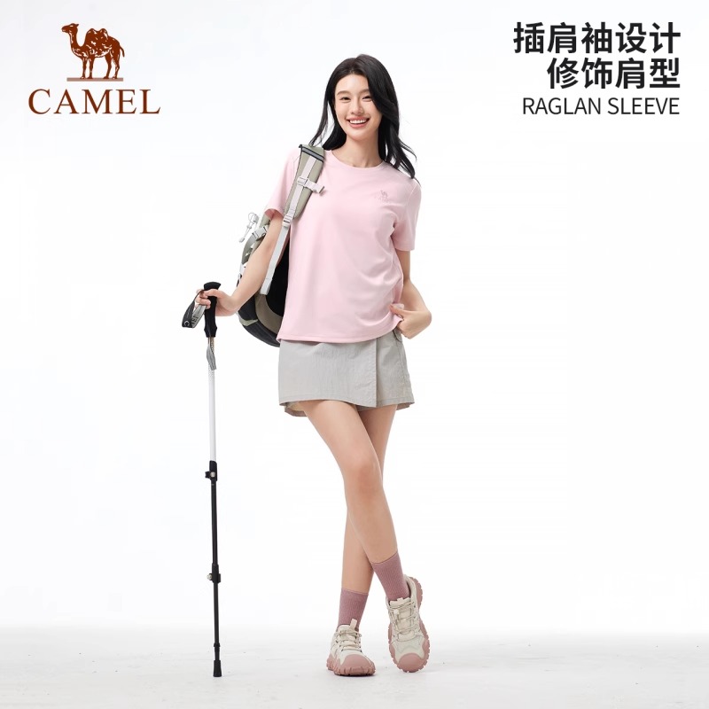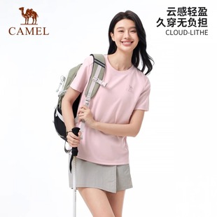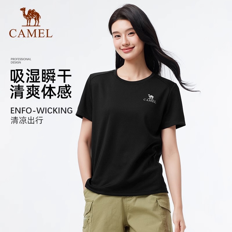 透气跑步情侣运动T恤 T恤女2025春夏圆领正肩速干短袖 骆驼女装 短袖