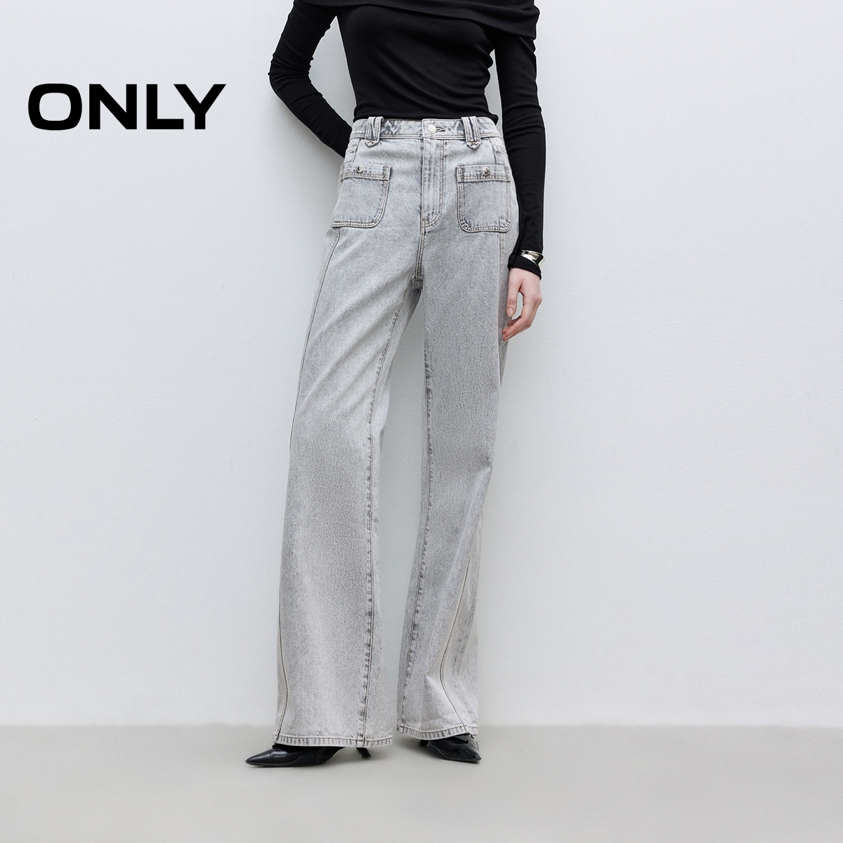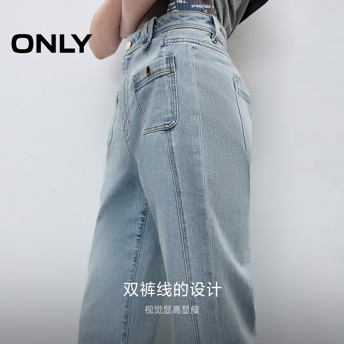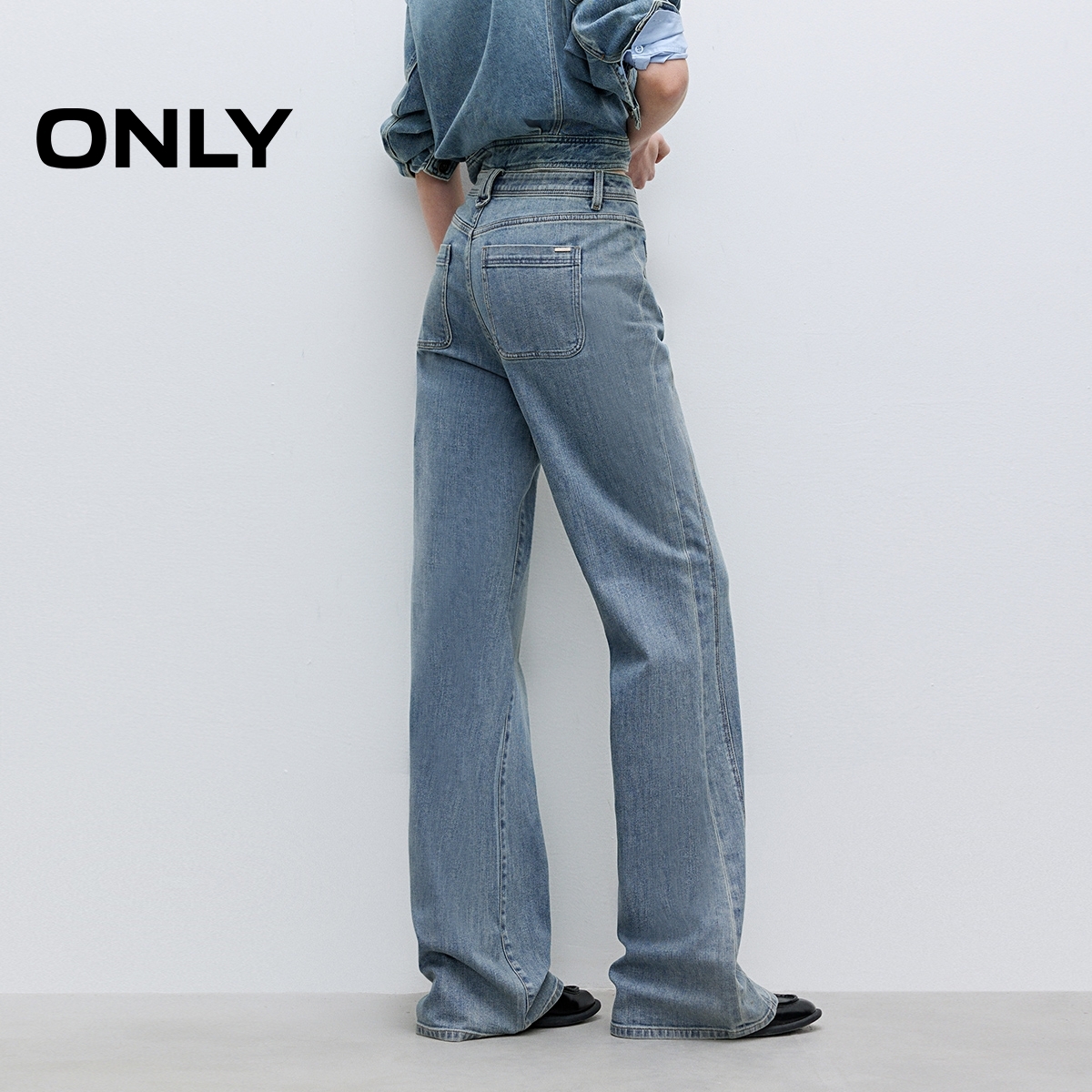 女翻边长裤 森马牛仔裤 2025秋季 新款 森柔牛仔 宽松阔腿裤 商场同款
