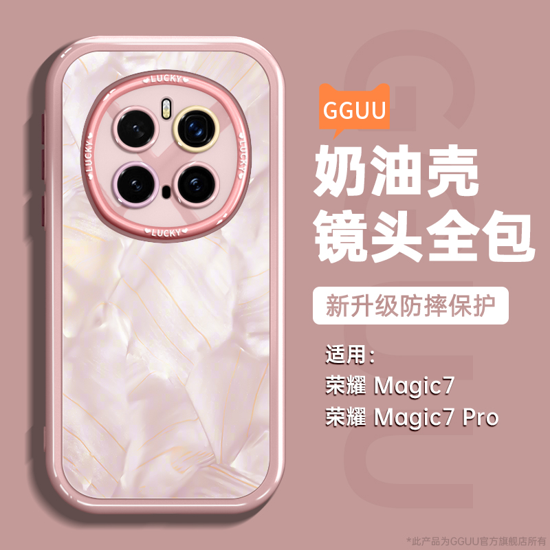 奶油洛可可格纹适用荣耀magic7手机壳magic7pro新款 tpu全包端外pro 2025保护套magic年华为硅胶高级感系列女