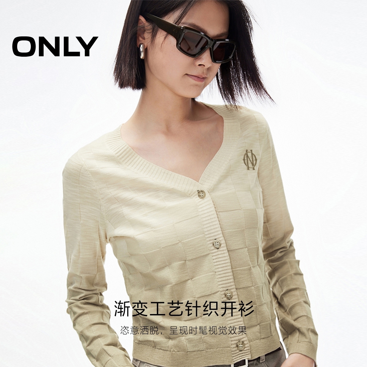 针织衫 ONLY2025秋季 开衫 酷感渐变设计舒适亲肤显瘦V领短款 女 新款
