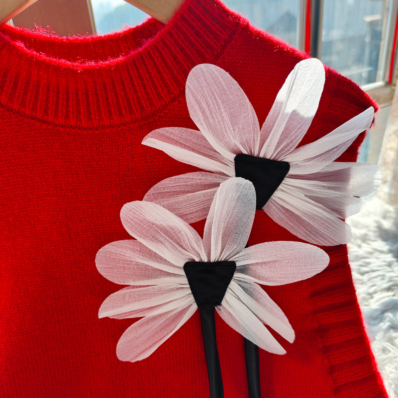 新款 打底衫 不规则下摆无袖 蕾丝黑色长袖 两件套 针织马甲套装 秋冬季