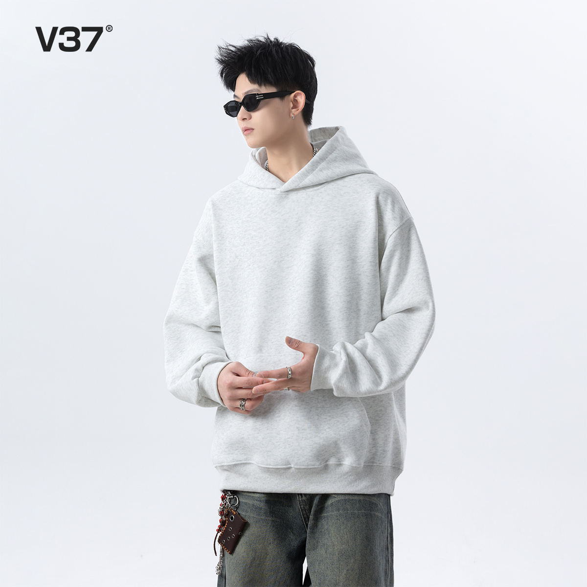 cleanfit简约百搭青少年外套 新款 V37黑色连帽卫衣男款 2025春秋季