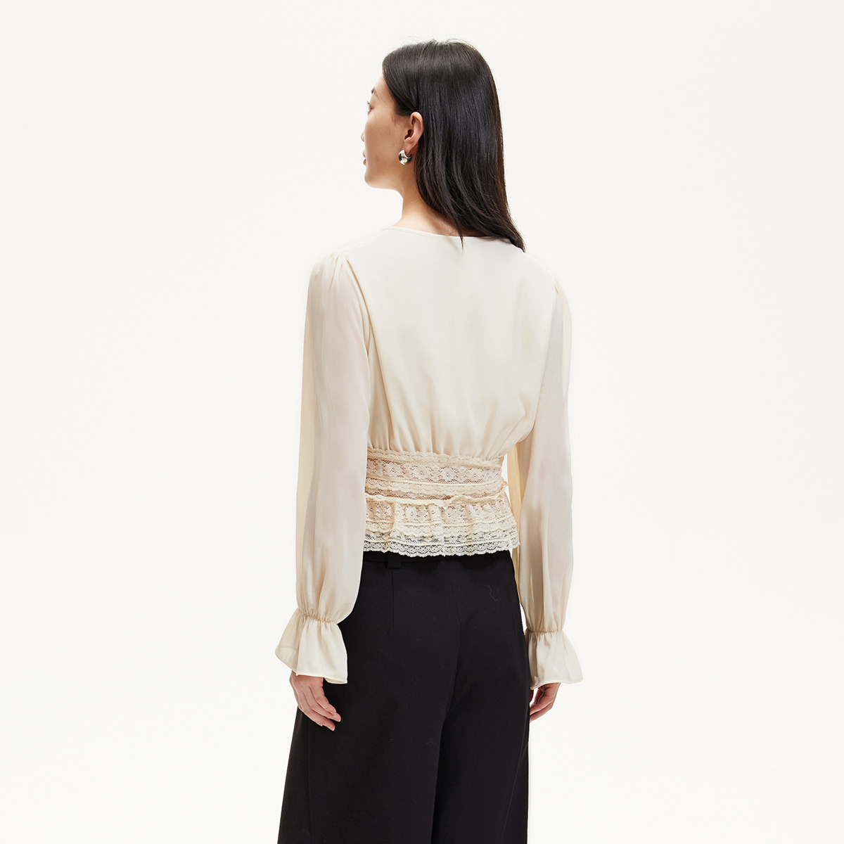 Moda衬衫 饰衬衫 女2025春季 蕾丝拼接收腰V领荷叶边装 新款 Vero