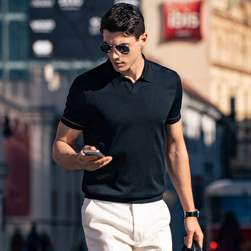 MrBu布先生海鸥领针织t恤男2025夏纯色透气polo轻商务短袖 AT16008