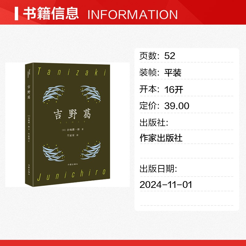 外国小说文学 社 谷崎润一郎 作家出版 图书籍 新华书店正版 译 竺家荣 著 日 吉野葛
