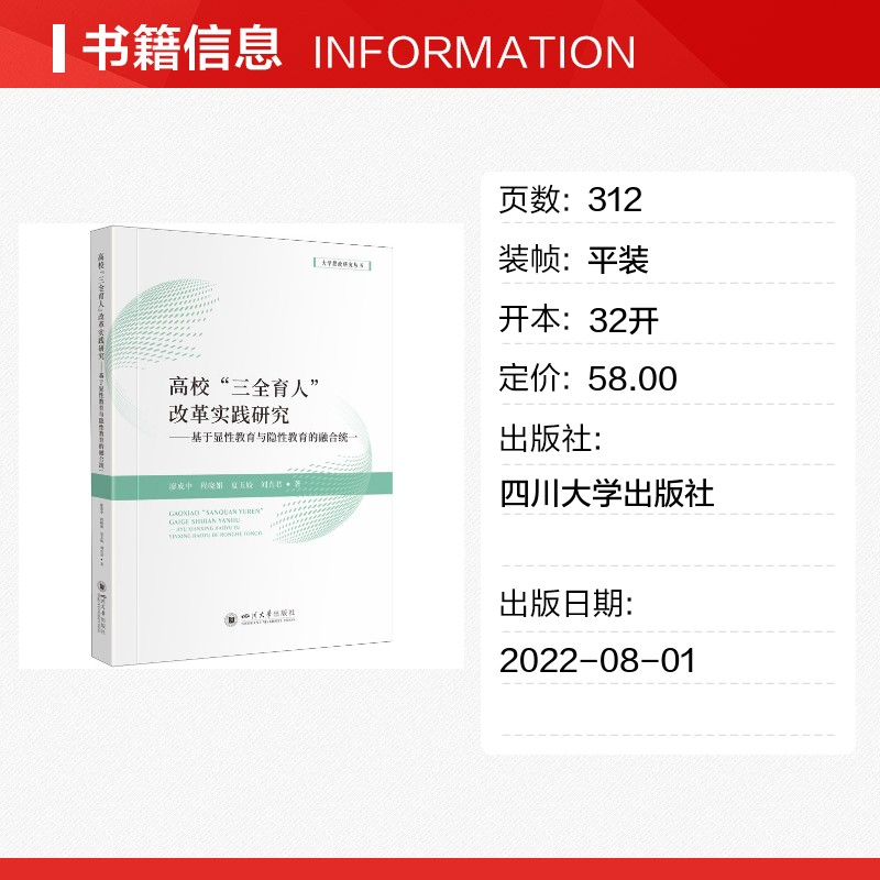 融合统一 廖成中 新华书店正版 三全育人 图书籍 育儿其他文教 改革实践研究——基于显性教育与隐性教育 著 高校 等