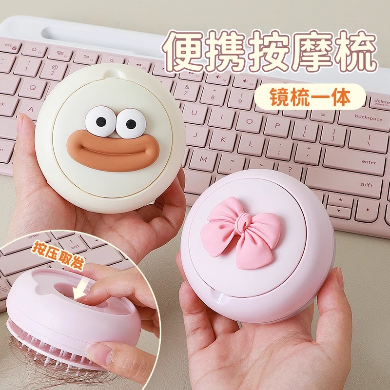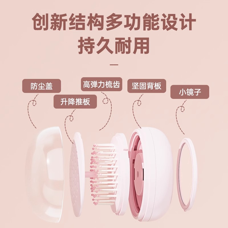 小梳子可伸缩魔法梳多功能一键清洁随身便携镜子一体按摩气垫梳子