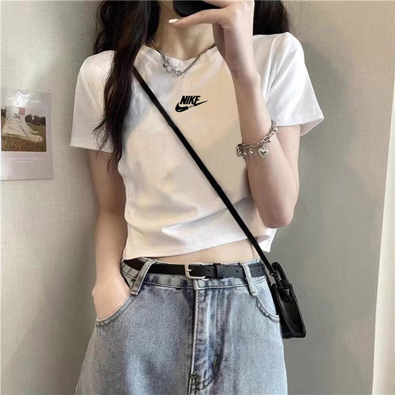 2025新款 t恤女装 高腰短款 修身 纯棉小众白色上衣 夏季 显瘦韩版 短袖