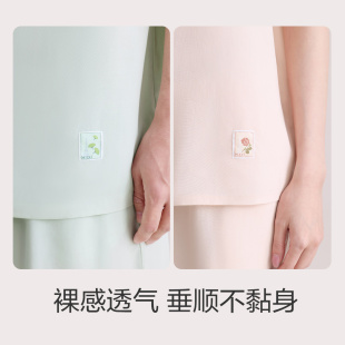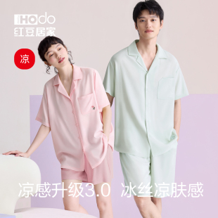 冰丝家居服套装 红豆凉感睡衣莱赛尔情侣家居服短袖 女夏 小海风
