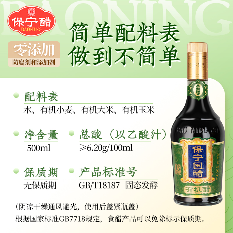 保宁有机醋500ml家用凉拌食用寿司专用饺子醋纯粮酿造 零添加