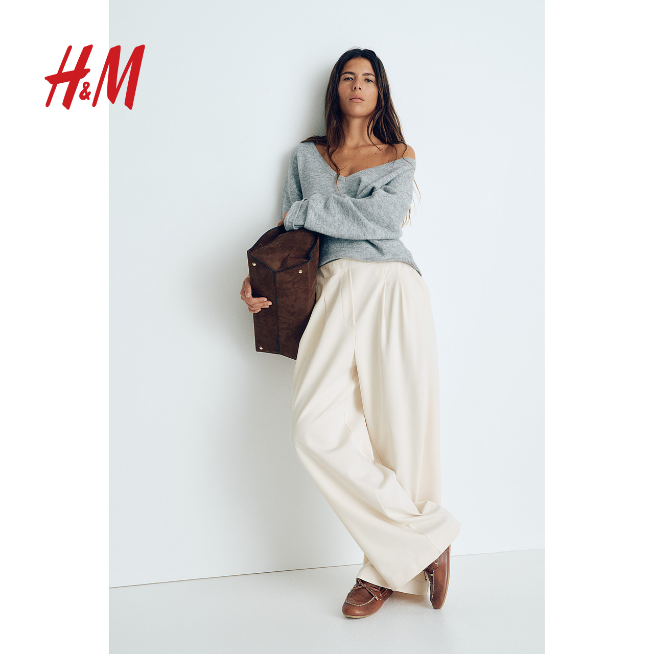 长裤 2025气质简约高腰宽松直筒通勤商务西裤 1264877 休闲裤 HM女装