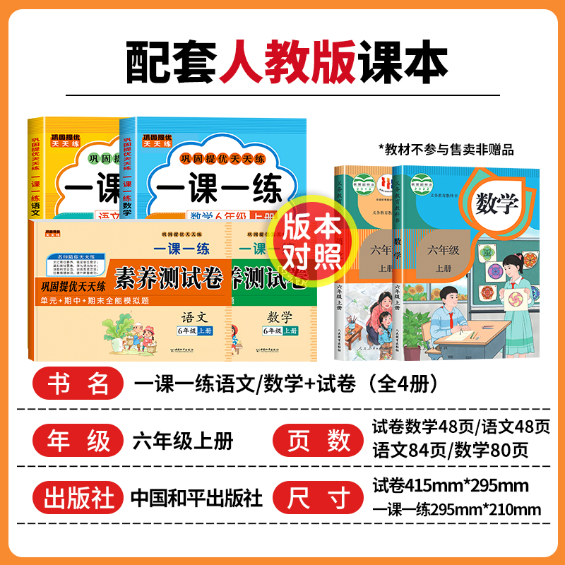 同步训练课时作业本同步练习册一本小学生6年级课堂语文数学教材每日一练 试卷全套人教版 2025新版 六年级上册语文数学一课一练
