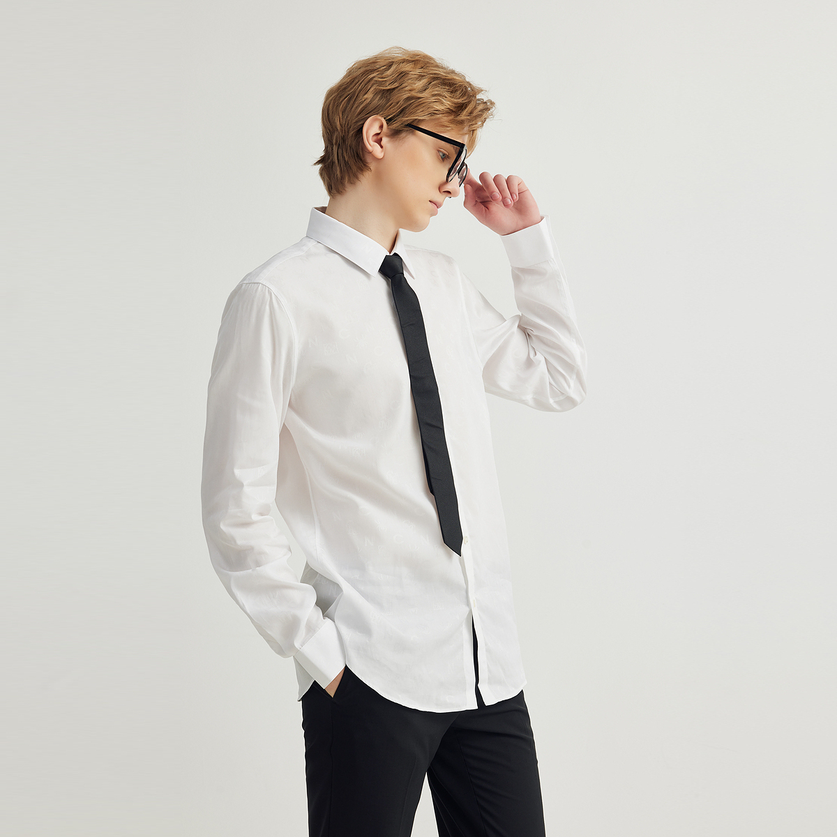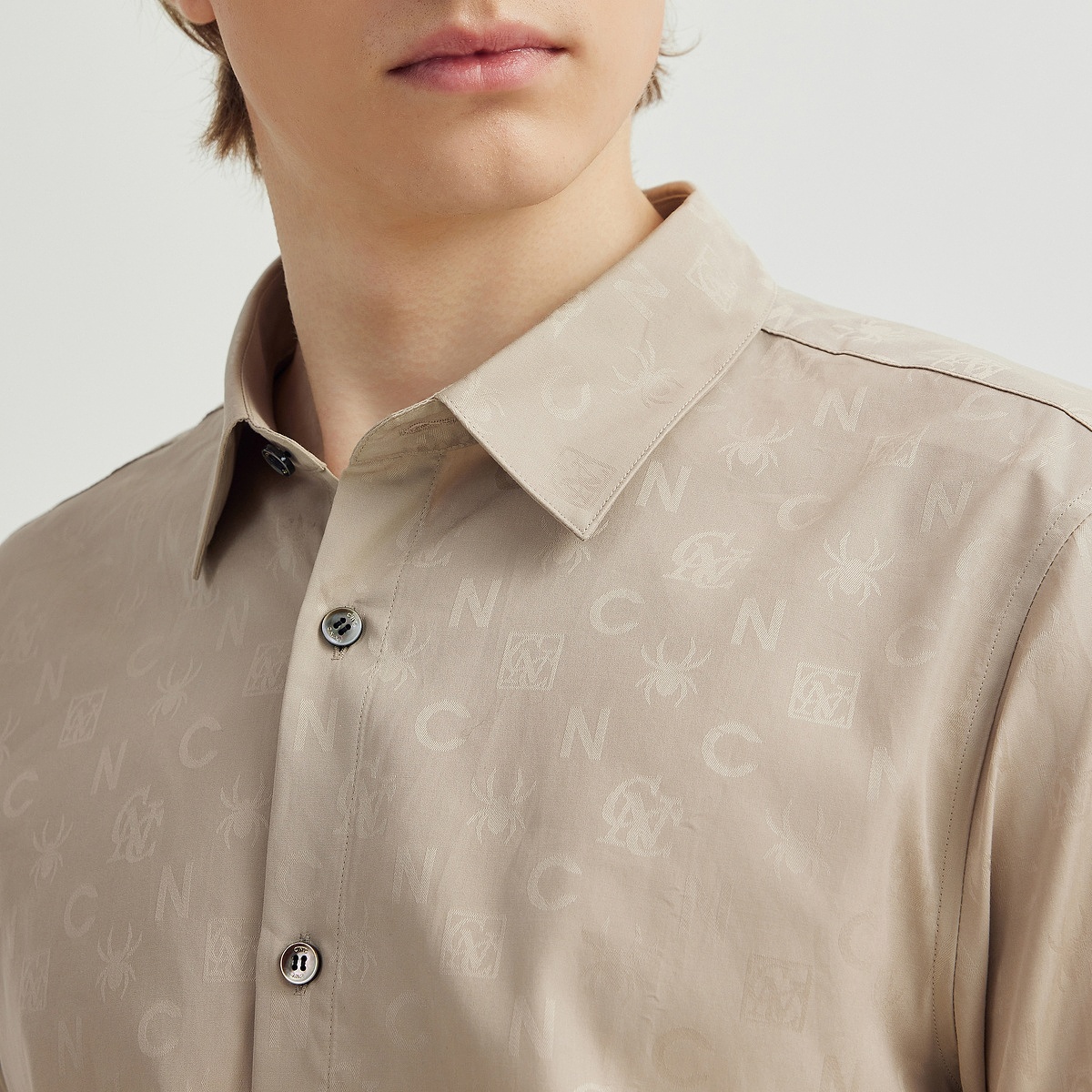 衬衫 CNC男装 正装 衬衣男2025春夏新款 奥莱暗logo印花轻奢商务长袖
