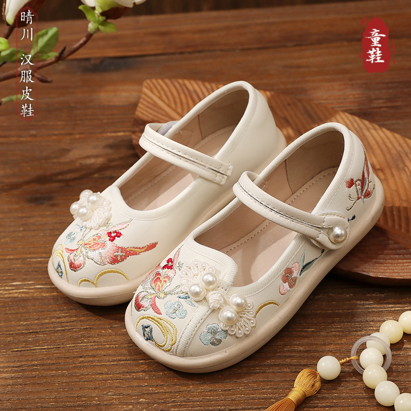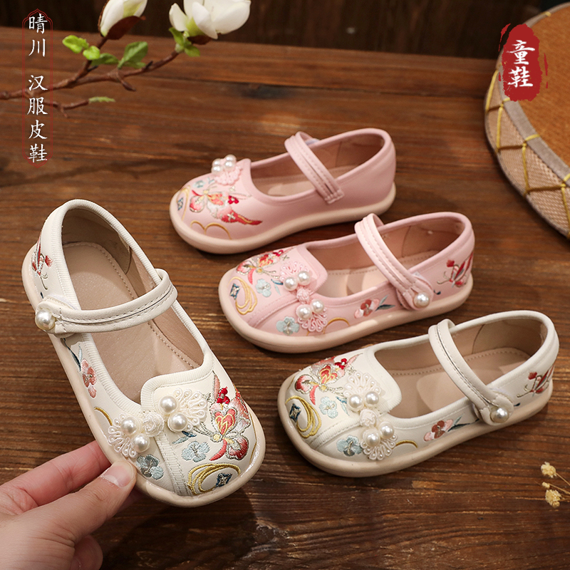 中国风表演儿童皮鞋 女童汉服鞋 手工古装 古风绣花鞋 子2025春秋新款