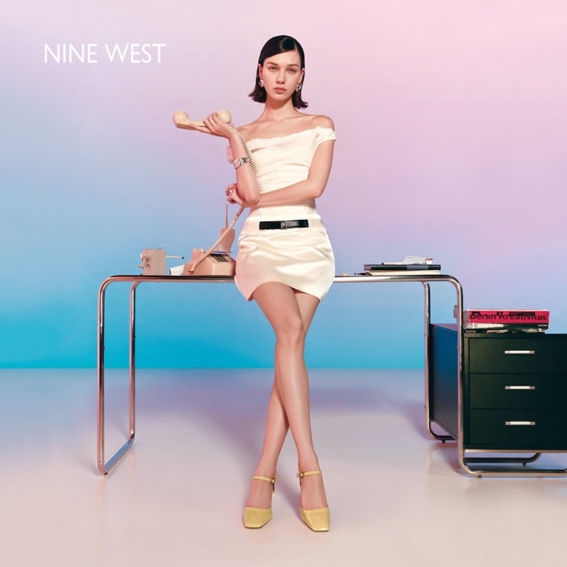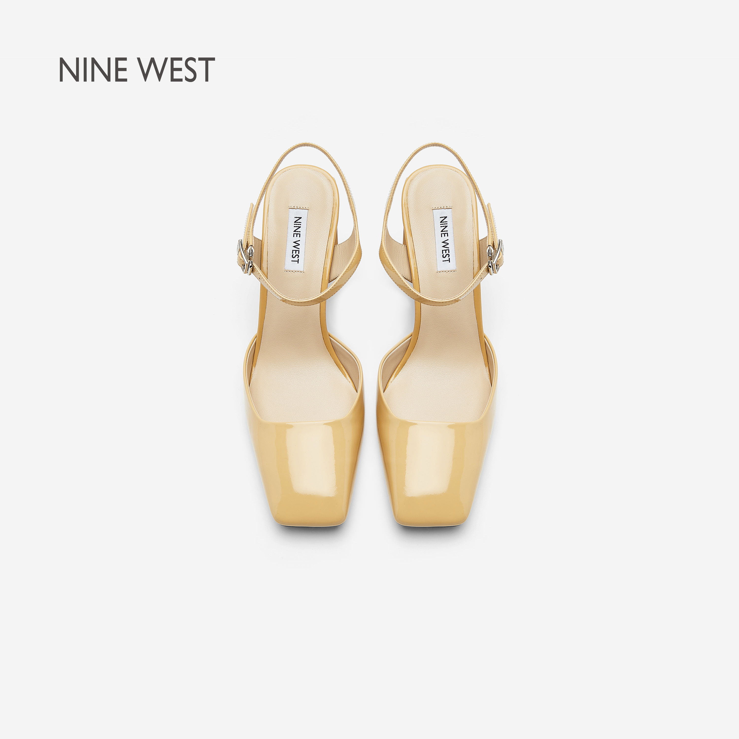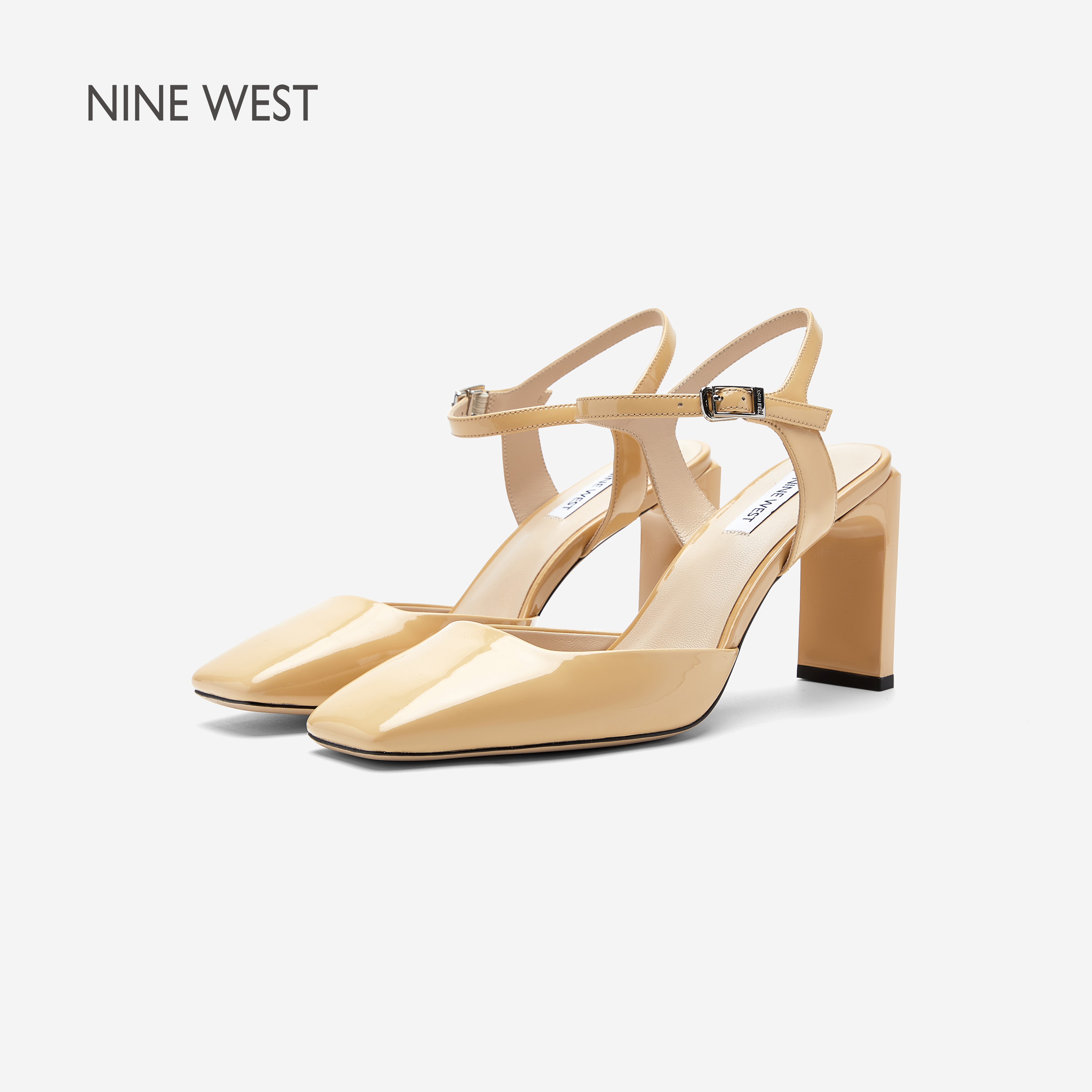 商场同款 女粗跟单鞋 Nine 玖熙方头高跟鞋 真皮漆皮凉鞋 West