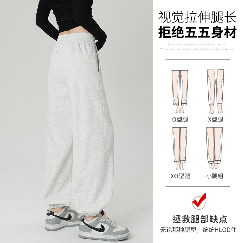 女春夏季 高腰直筒束脚休闲卫裤 薄款 宽松灯笼裤 子 美式 军绿色运动裤