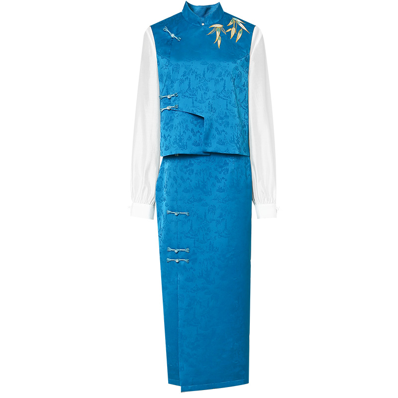 高腰国风提花半裙套装 20255春新中式 马甲 绣花无袖 立领天丝上衣