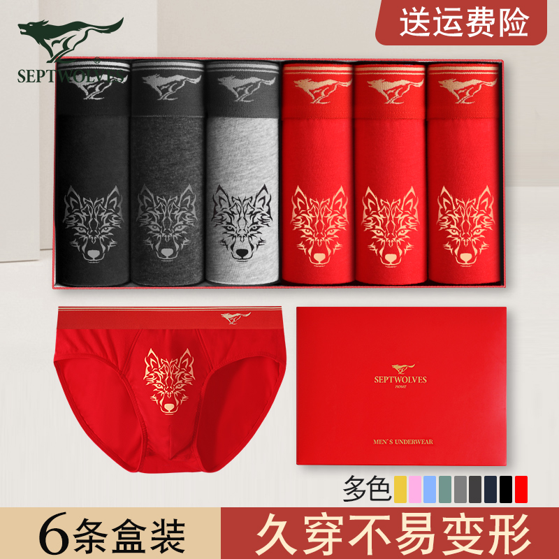 短裤 七匹狼男士 头男内裤 纯棉弹力舒适透气抗菌中腰男生三角裤 内裤