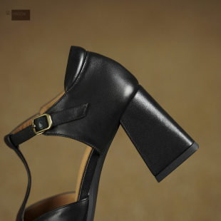 春夏粗跟法式 女 高跟鞋 罗马丁字凉鞋 玮保 单鞋 真皮小水台包头凉鞋