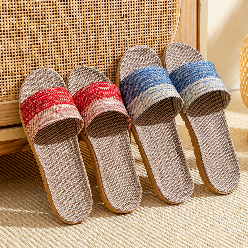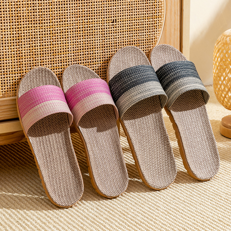 居家室内静音防滑厚底木地板情侣凉拖鞋 男夏季 女 家用亚麻拖鞋 新款
