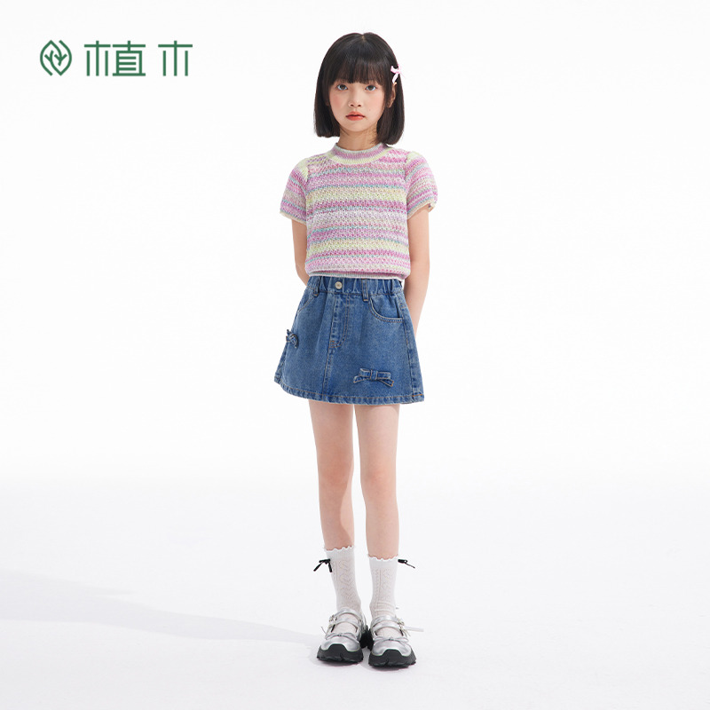 短袖 植木童装 中大童渐变针织修身 新款 上衣儿童T恤 女童T恤2025夏季