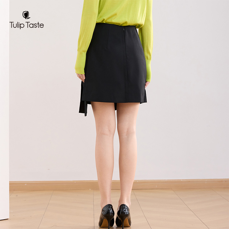 设计师款 不规则拼接绑带半身长裙18465928 佐丹奴复古格纹裙女新款