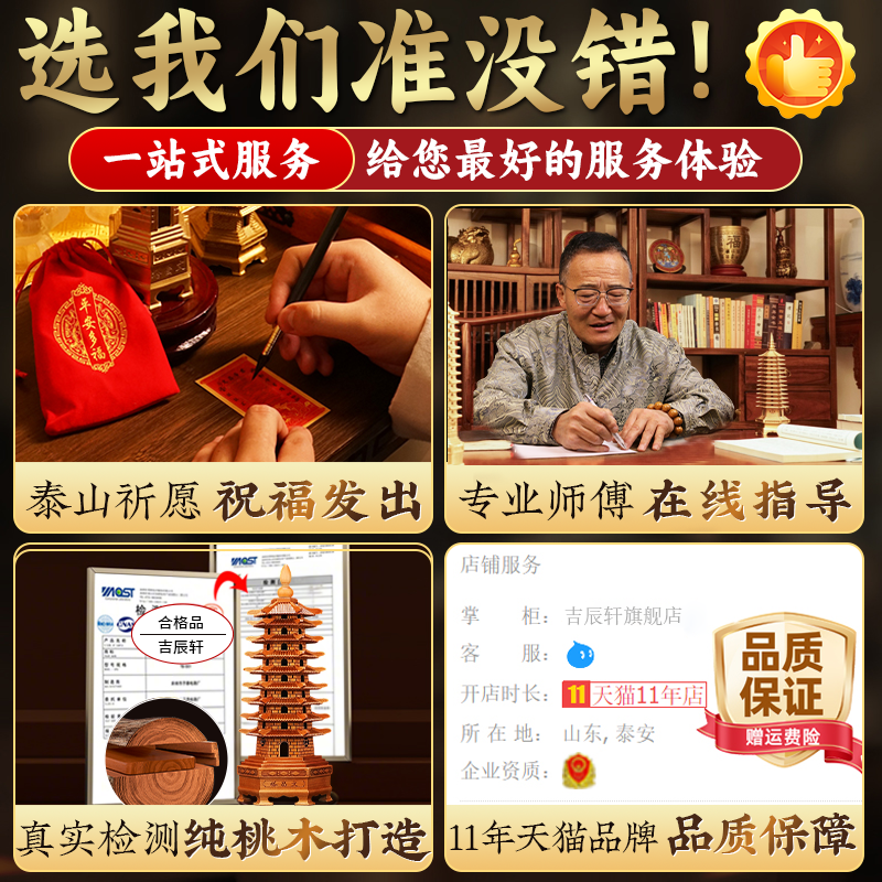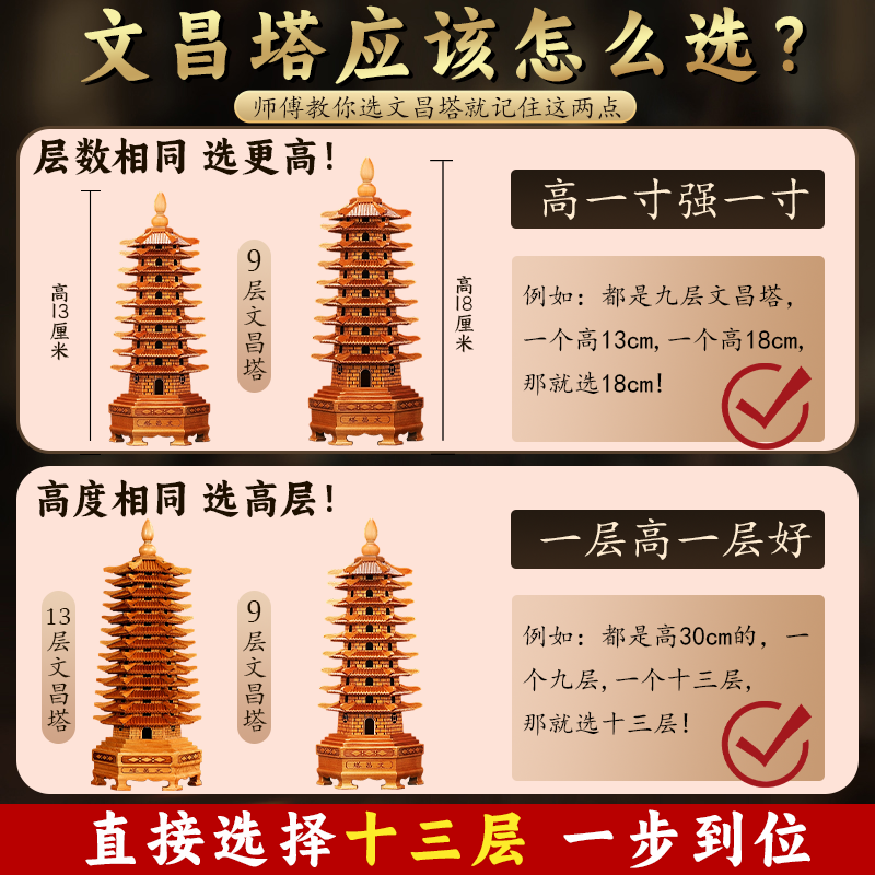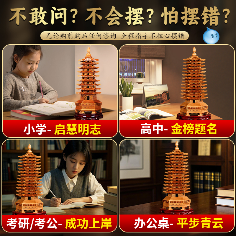 文昌桃木塔七层九层手工十三层实木13层木制木质书房摆件工艺品