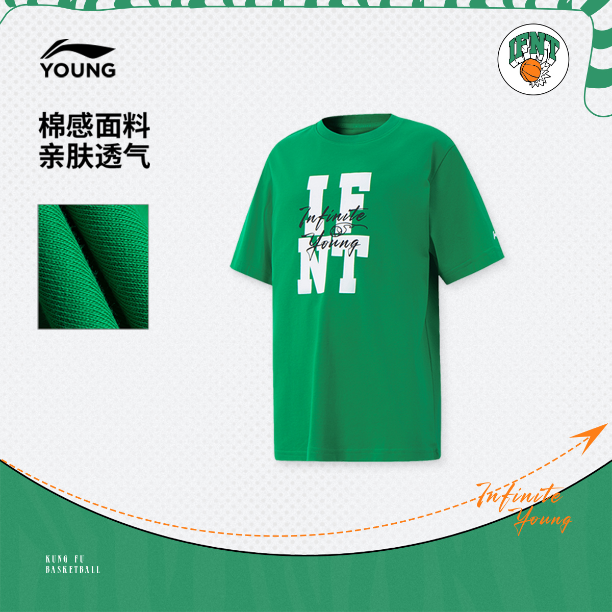 中大童上衣夏装 李宁儿童纯棉宽松针织短袖 男童装 夏季 T恤2025新款