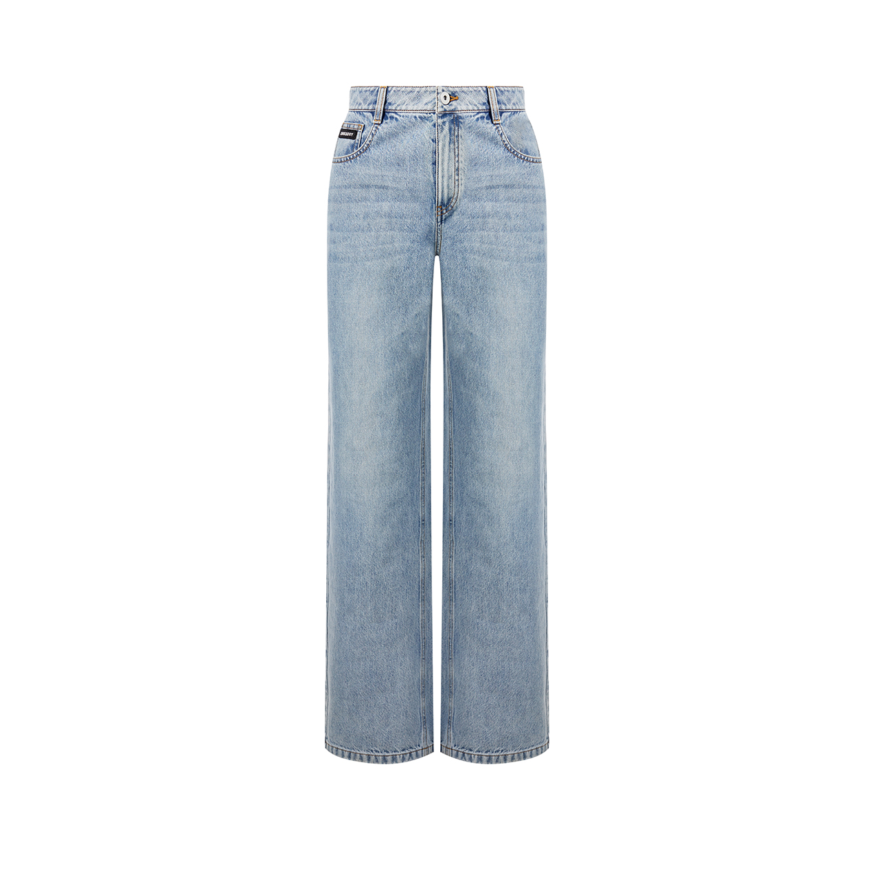 女25秋季 WANG红标双腰搭片牛仔裤 LEDIM 印花阔腿长裤 明星同款