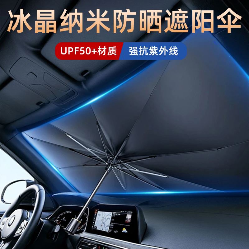 车载汽车遮阳板前档隔热落太阳雨伞折叠防晒折叠式 车内遮阳伞