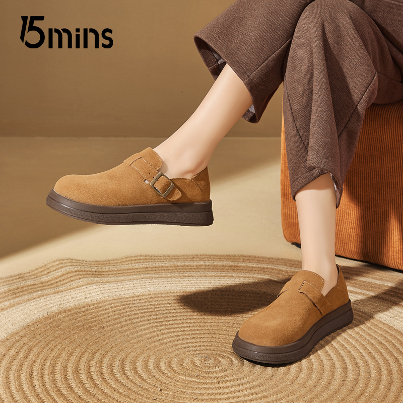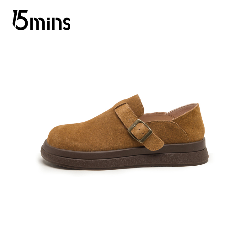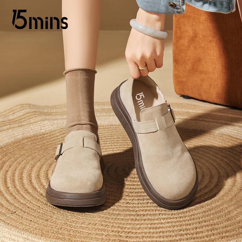 春秋真皮懒人一脚蹬单鞋 女2025新款 ~厚底全包勃肯鞋 15mins饼干鞋