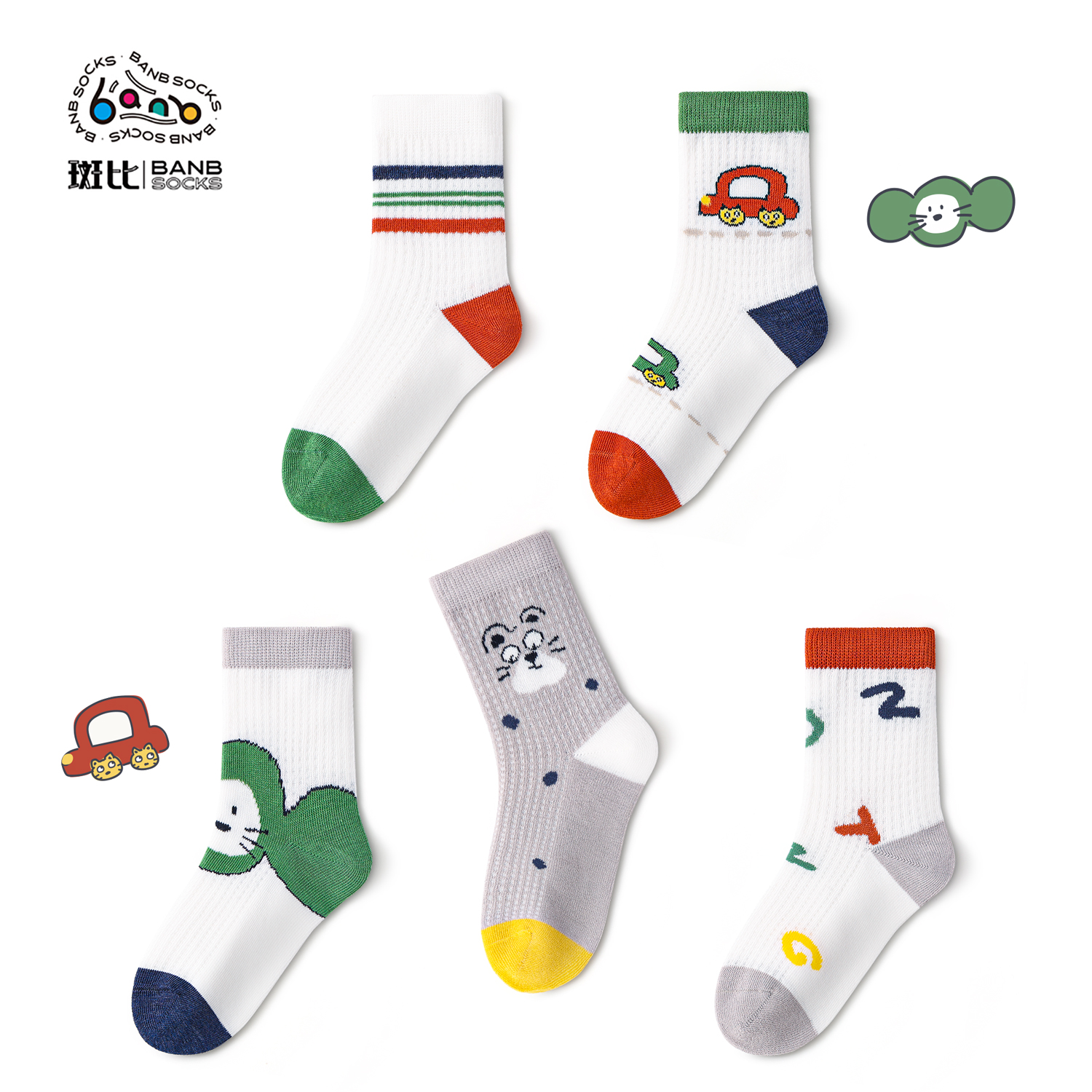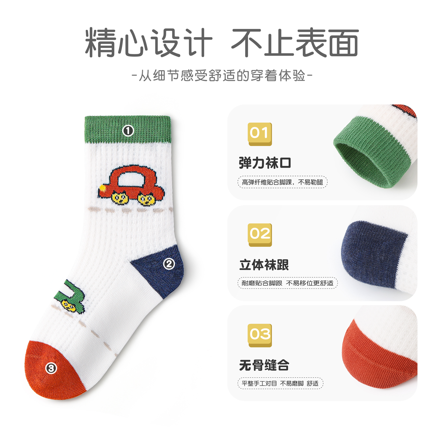 斑比潮袜儿童袜子春夏季 网眼透气棉袜大童宝宝卡通无骨男童袜 薄款