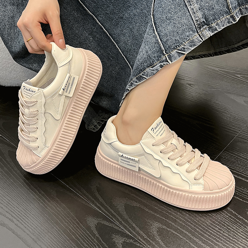运动单鞋 新卡伦贝壳头小白鞋 女春秋百搭网面厚底真皮休闲半拖板鞋