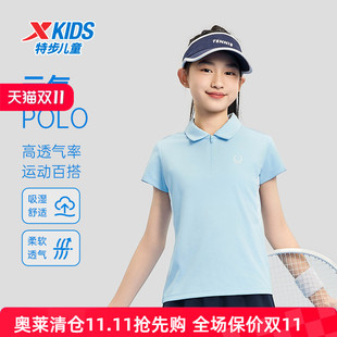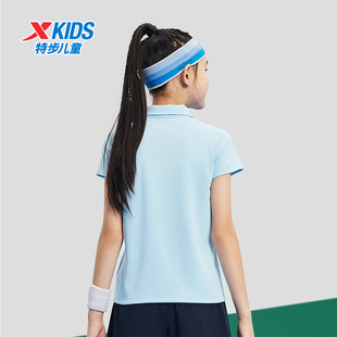 翻领半拉链POLO衫 特步童装 新款 t恤女童夏季 大童运动上衣 儿童短袖