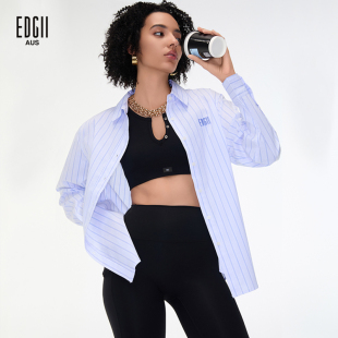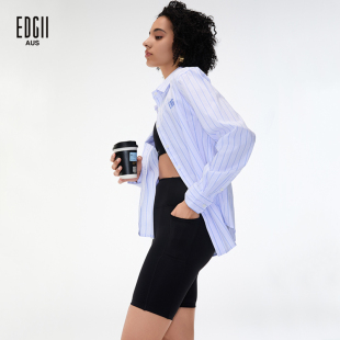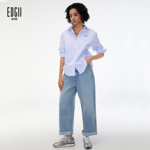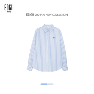 女上衣外穿轻奢高级感长袖 刺绣logo蓝色条纹衬衫 2024AW新品 EDGII