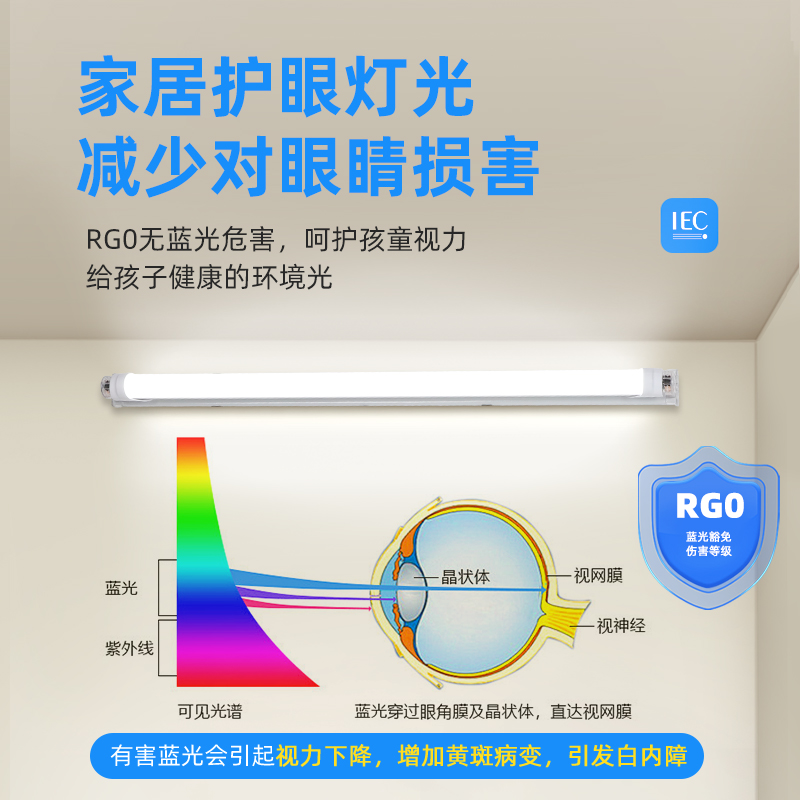 全光谱灯管T8分体高显色护眼5000k日光灯家用宿舍学习光管led灯条