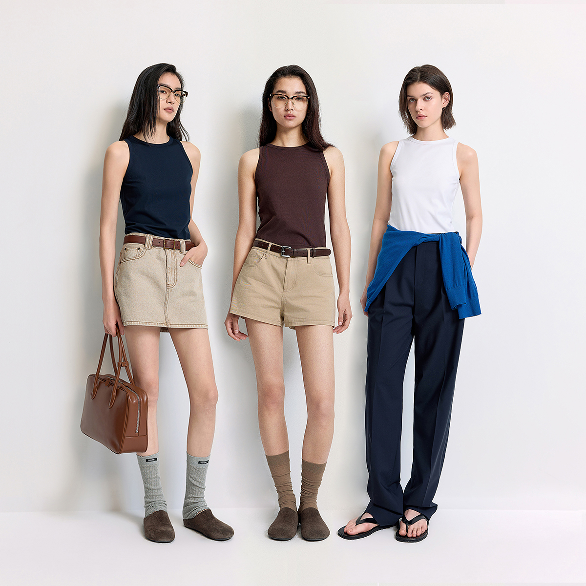 HENNY 坑条高弹显瘦免穿文胸吊带背心 RUE亨尼露春夏大圆领基础款