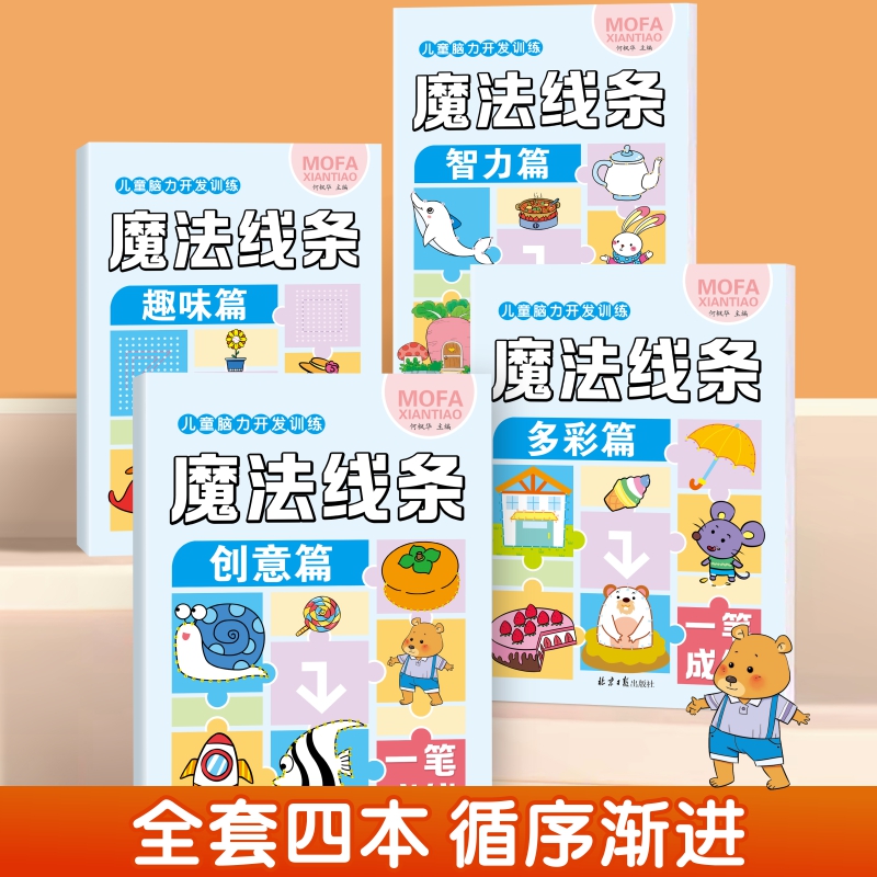 魔法线条儿童脑力开发训练趣味大挑战全4册提升左右脑开发思维专注观察力训练3 6岁幼小衔接幼儿益智早教少儿童连线画涂色画描红本