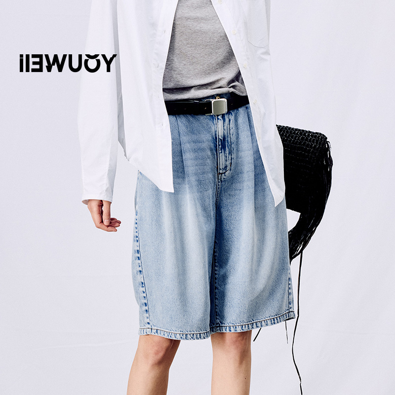 Y5025101 复古天丝垂感牛仔中裤 YOUWEI有尾2025春季 新品
