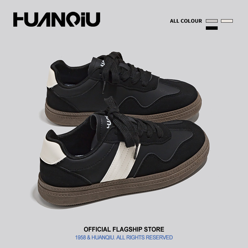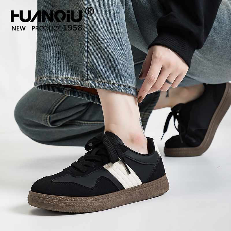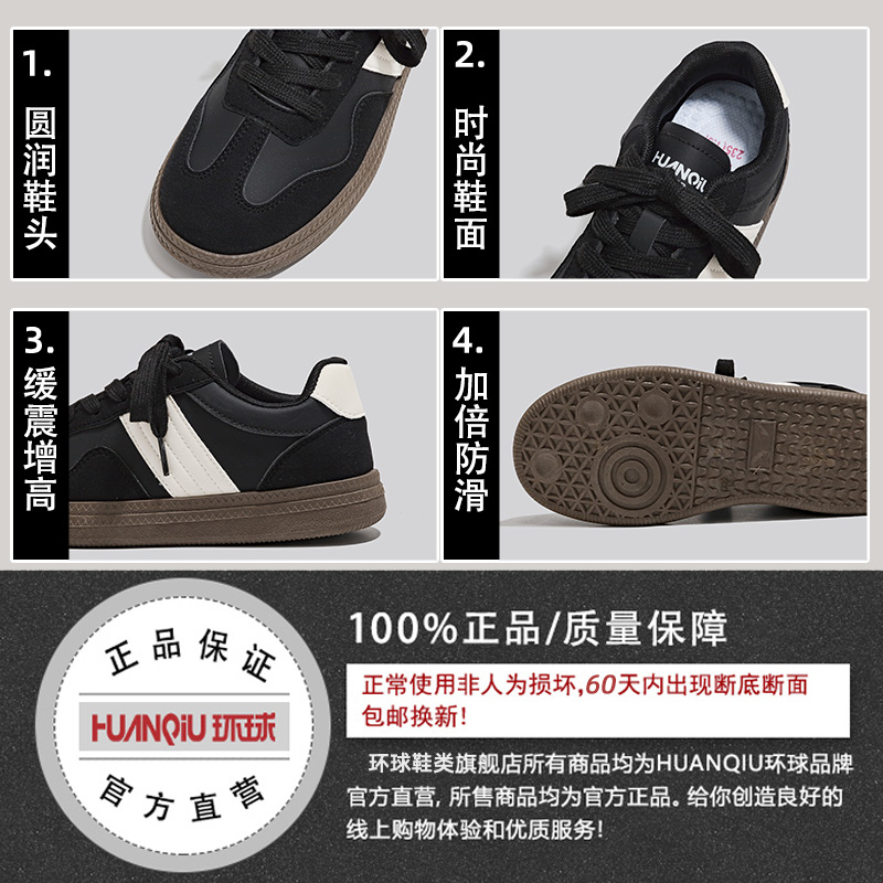 百搭ins潮轻便舒适厚底休闲板鞋 环球黑色德训鞋 爆款 2025新款 女款