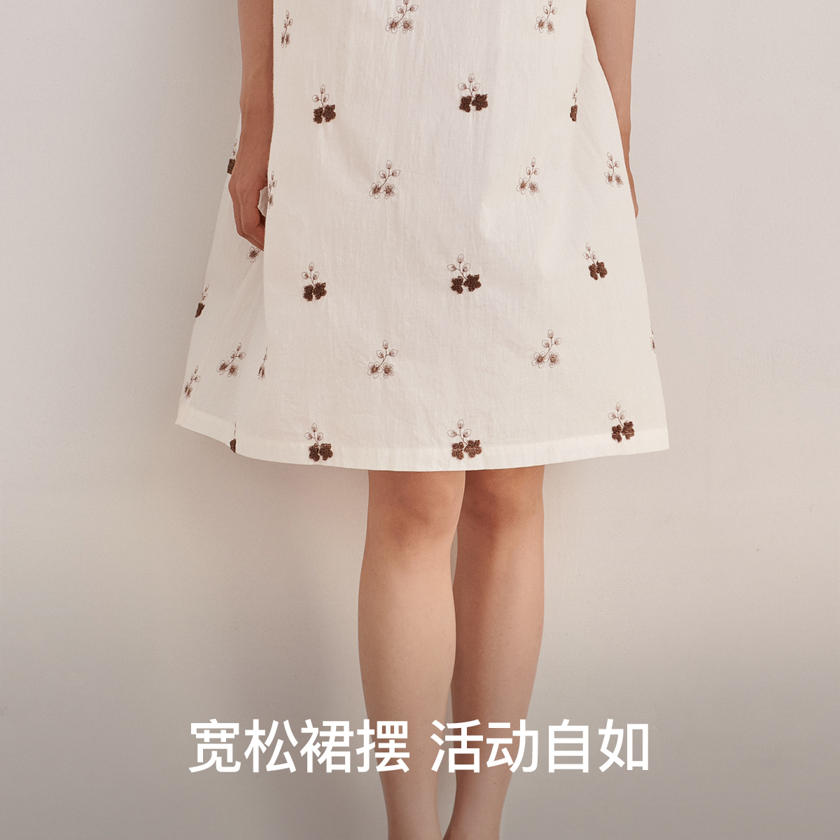 林卡女士家居裙梭织纯棉绣花甜美公主圆领短袖 可外穿 裙套装