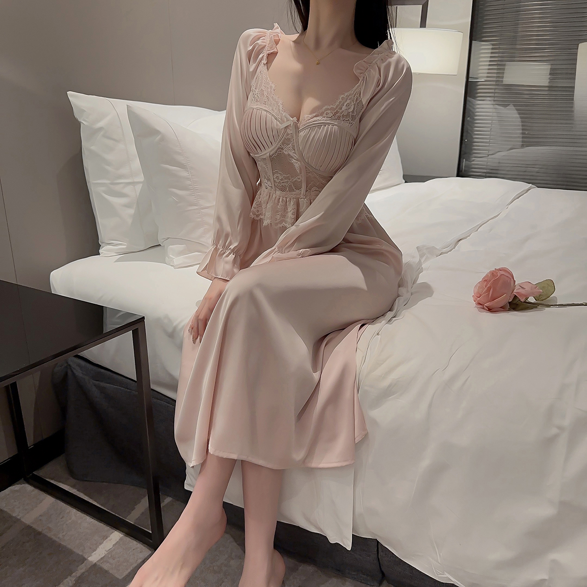 家居服套装 爱帝带胸垫睡衣女2025花纱长袖 可外穿 林依轮直播间