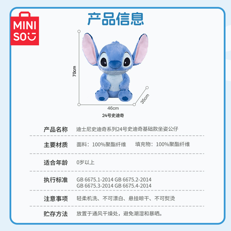 MINISO名创优品迪士尼史迪仔毛绒大号公仔玩偶娃娃史迪奇玩具送礼
