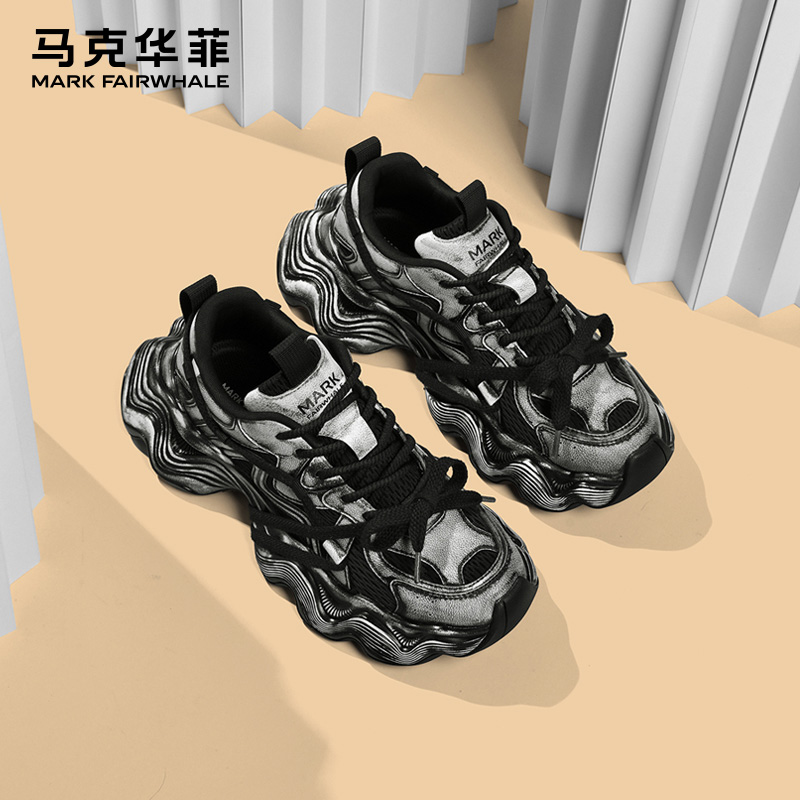 男休闲运动鞋 马克华菲男鞋 潮流黑武士厚底增高老爹鞋 新款 2025秋季
